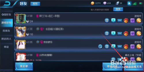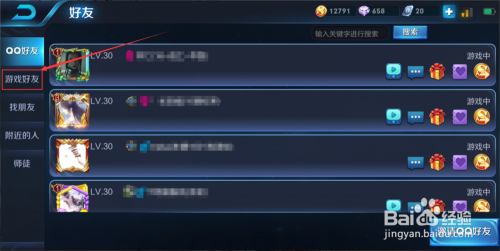 然后在老友界面中选择【游戏老友】一栏,入下图所示。