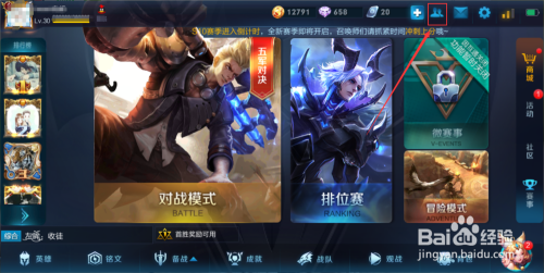 打开游戏后,我们点击右上方的人像,如下图所示。