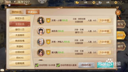 第四步:我们也可以寻找本身想入的步队,如下图所示,我们可以点击组队,在这里可以看到正在组队的所有步队,我们找到想入的步队后直接点击【入队申请】按钮即可。