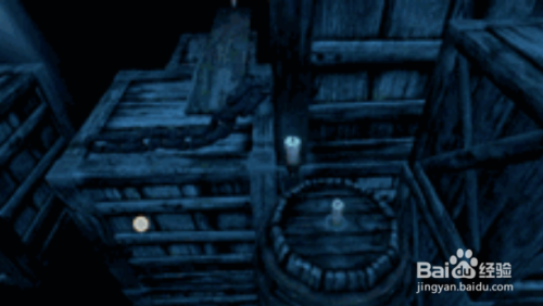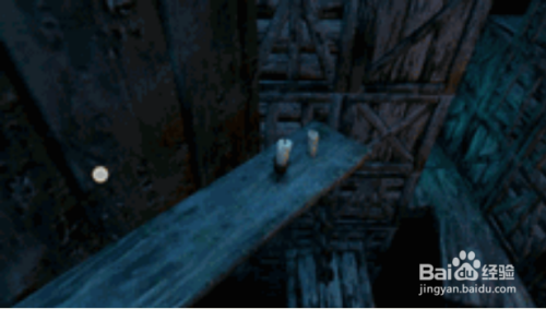 第二步:我们点亮第一根蜡烛后往右边走,看到上翘板子和铁链交互处时停下,在铁链角可以看到下方水桶上为我们要找的第二根蜡烛,如下图所示,点亮即可。