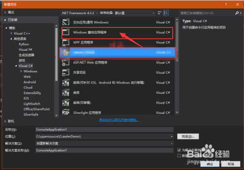 1. 打开您的VS 2015, 建立windows窗体应用法式,如下图所示