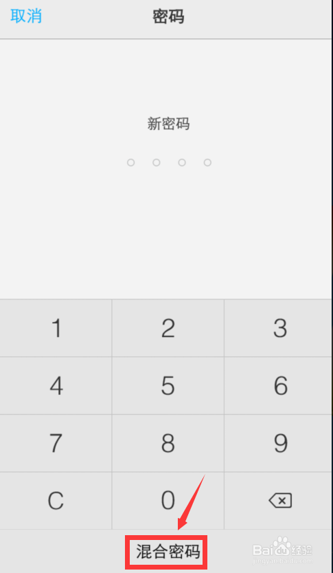 点击夹杂密码设置复杂密码,需要简单密码就点击密码进入后直接输入新密码。