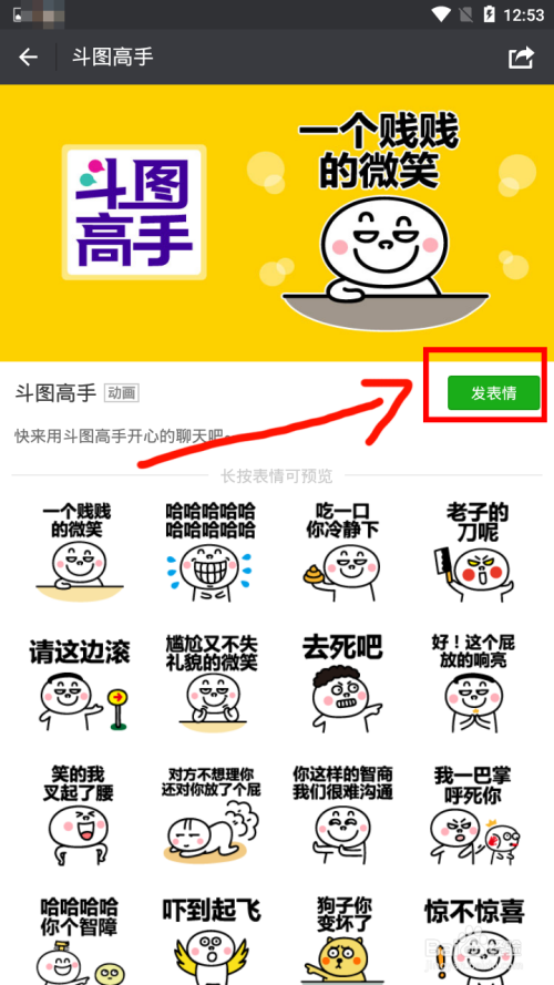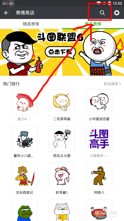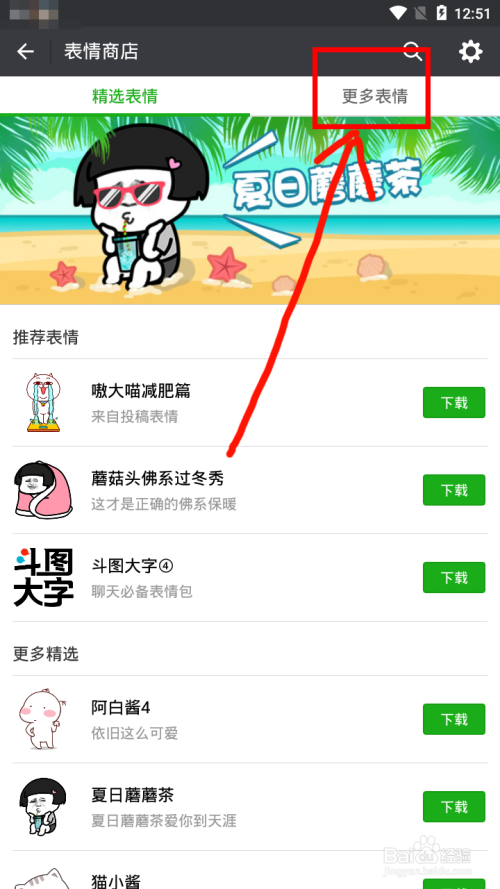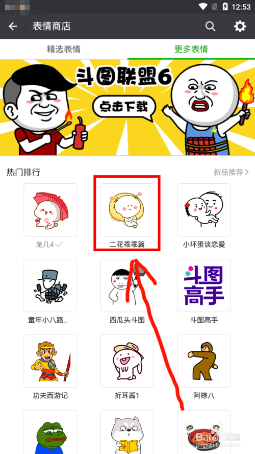 在更多脸色栏下,有热点脸色排行,遴选此中任一喜好的脸色包并点击,如图: