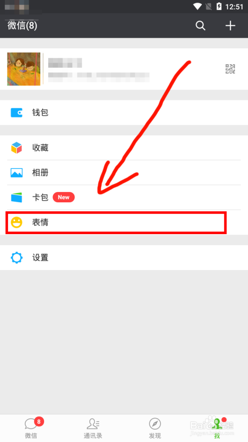 然后在微信我的界面,找到【脸色】并点击,如图所示: