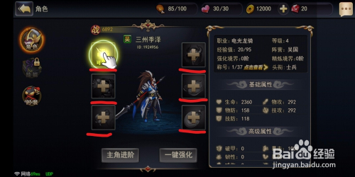 除了穿戴装备之外,强扮装备也是可以增添脚色的战斗力的。在脚色的本家儿界面的下方直接点击一键强化就能直接强化所有已经穿戴的装备
