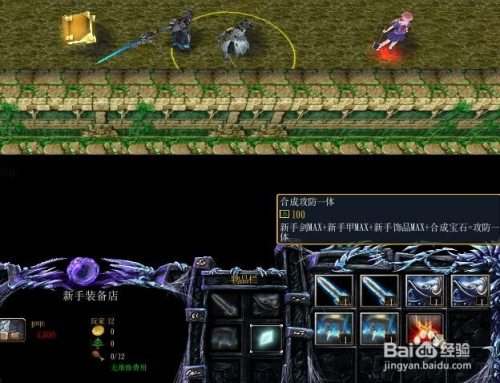 接着回城,在新手装备店采办兵器装备,并直接进级到max