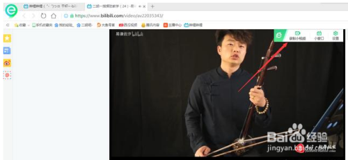 打开360安全浏览器,找到你要截取的收集视频,我这里以B站的视频为例,点击播放视频,浏览器会主动嗅探当前网页播放的视频,接着点击右上角的【录制小视频】。