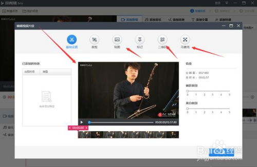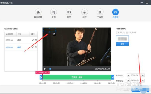 如上图,在弹出的界面中我们可以对视频进行美化、裁剪、贴图、添加二维码和马赛克等操作;好比视频上有水印,我们可以点击马赛克东西,给视频去一下水印,如下图所示。