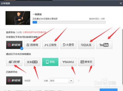 视频导出今后,快剪辑还撑持一键发布到各年夜短视频平台,快速分享你剪辑的作品,是很便利的,如图所示。