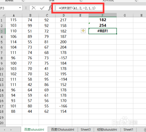 A1单位格标的目的下移2行,在标的目的左移动2行,方针区域在单位非分特别面,引用掉效。