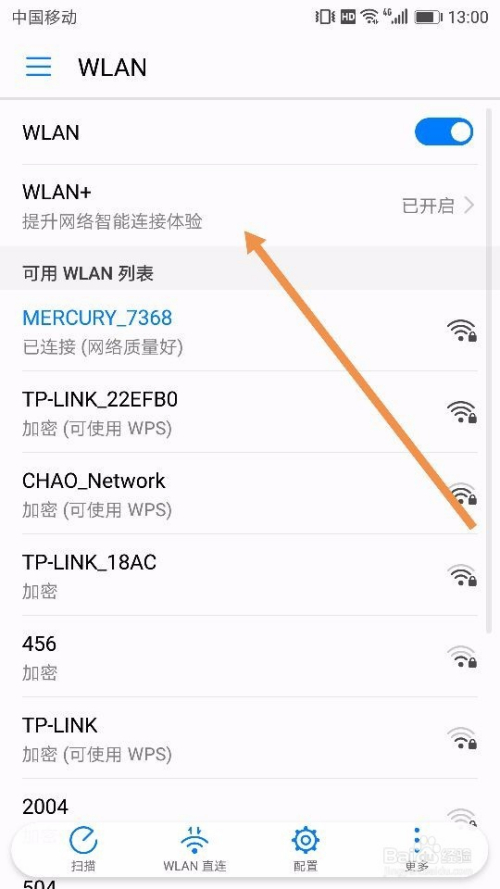 在所有的wifi列表中,我们点击最上面的WLAN+这个选项,如图所示~