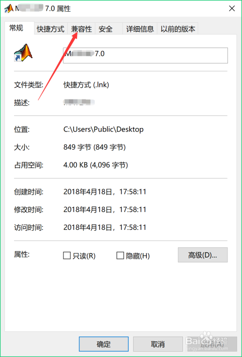 此时即可进入常规界面,需要进行切换,下图箭头位置兼容设置,点击此项,进入选择页面。