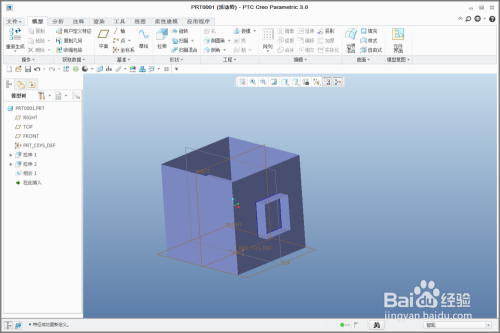 在Creo软件的建立窗口中新建一个零件;