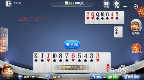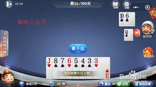 接着对方会出梅花6,我们出J一张,如许对方要不起。