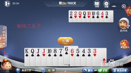 之后对方会出梅花3,我们出10,然后对方会出Q,我们接着出黑桃K。