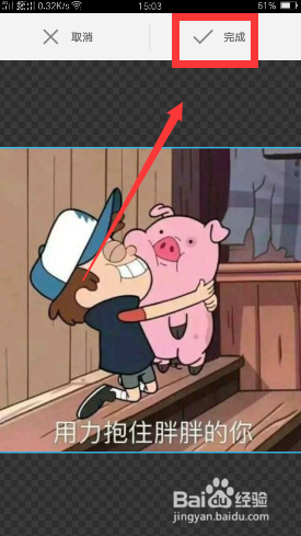 相册里选择好要上传的图片后,设置一下图片的大小,点击完当作这一项。