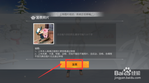显示图片上传当作功,期待审核,可以输入上传照片想要说的话,点击颁发这一项。