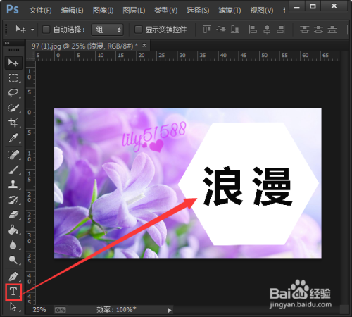 在六边形上面输入本身想要的文字(浪漫),而且将文字调整合适的大小,如图所示;