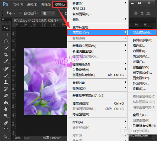 首先打开ps软件,插入一张淡紫色的布景图。
