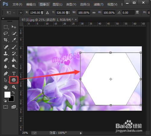 操纵画图东西在淡紫色的布景上面,画出一个白色的六边形。