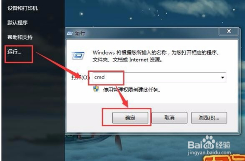 电脑主动获得IP地址的查看IP的方式是,在电脑开始菜单中打开运行,然后输入cmd进入号令系统。