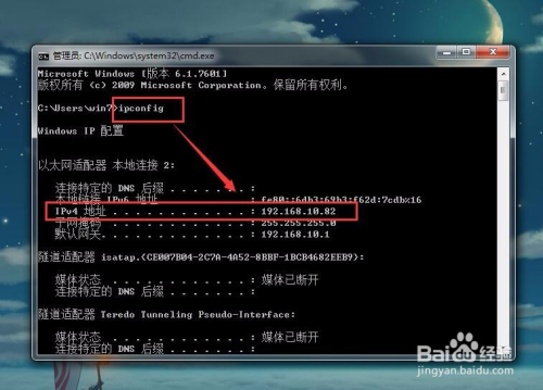 在号令窗口中手动输入号令ipconfig,然后按回车键执行下ipconfig号令,如许我们就可以看到我们的电脑内网分派的IP了。