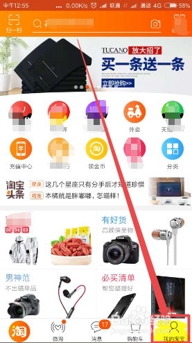 打开之后,默认来到 淘 页面,然后点击 我的淘宝 选项。