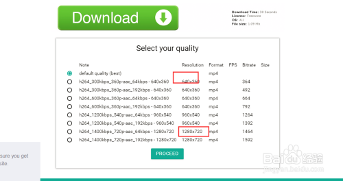 3. 步调2中的页面加载后会进行跳转,可以选择本身喜爱的分辩率,【Proceed】->【下载】,如下图所示