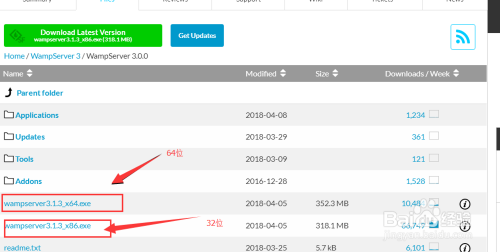 首先,百度搜刮引擎中输入【wampserver】,默认搜刮的第一个成果后面带有【官网】字样的点击即可
