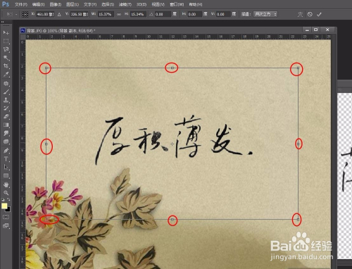 第十步:把出格年夜的字拖沓至如下状况,可以调整八个角对文字进行调整。