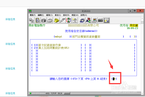 在光标闪灼处输入要执行的菜单序号,这个系统和我们日常平凡利用的用鼠标点击菜单的系统纷歧样,完满是靠键盘输入来操作的。