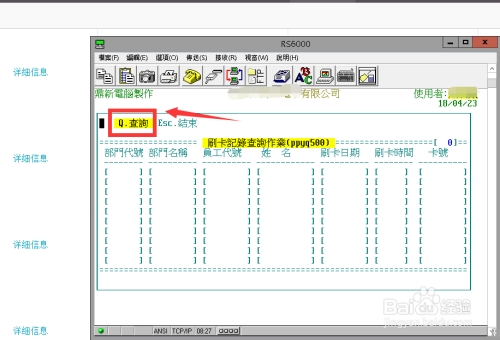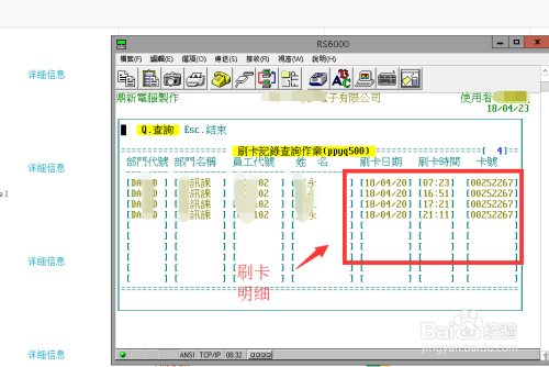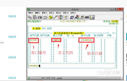 输入部分编号、要查询的员工编号、查询日期进行查询。这里,每个内容输入完当作后按键盘回车键进入下一个选项框。