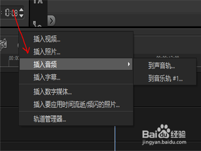 第四然后在视频编纂栏中,右键选择插入音频。