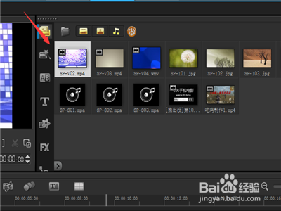 然后在左边的视频素材栏中,拉视频到编纂栏。