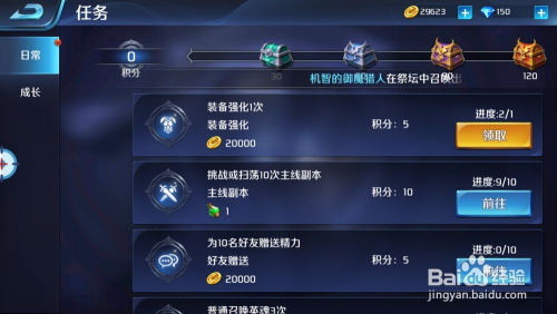 在使命中可以看到有已经完当作的使命,此时需要点击领取,然后还有未完当作的使命,可以进入完当作该使命