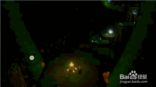 第四步:我们点亮第三根蜡烛后,我们标的目的右边走到拐角,然后标的目的上面走,光线比力暗,可以选择点亮本身照亮道路,或沿着发光蘑菇走就能找到第四根蜡烛,如下图所示。