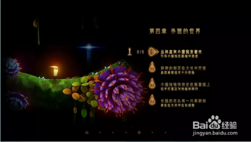第八步:我们点亮存档新生点蜡烛后,继续标的目的前方走,看到右边有很亮的工具后标的目的左边跳,然后照亮四周情况,可以看到花朵,同时可以看到平地上有我们要找的第七根蜡烛,如下图所示。
