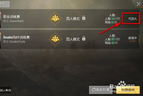 进入房间今后,会看到一个列表,这就是当前开启的房间,注重房间后面显示的状况,若是显示为可插手才可以申请,若是显示为游戏中则暗示当前无法插手。点击状况为可插手的房间,如图所示。
