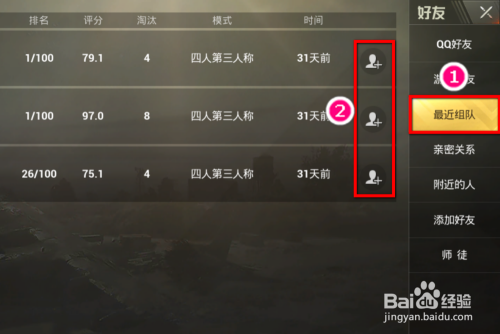 若是比来你与其他人组过队,那么我们就可以添加组队老友,添加的方式是:在图示页面右侧选项卡中点击选择【比来组队】,然后在左侧的列表中就能看到比来与你组队的人员了,点击人员清单后面的【+】号。