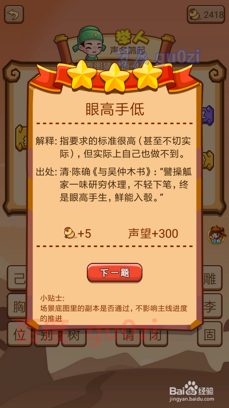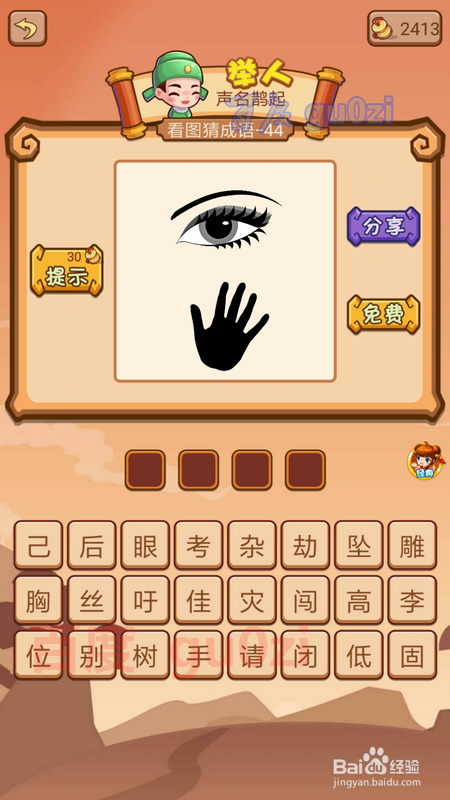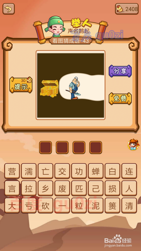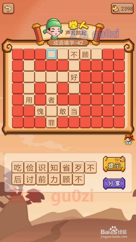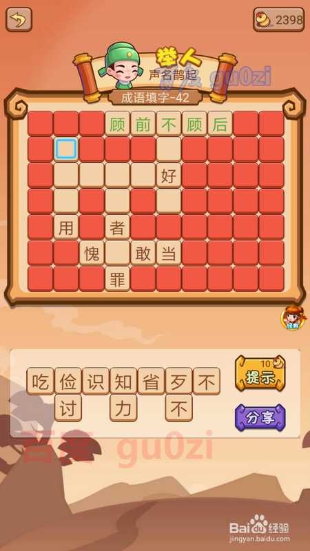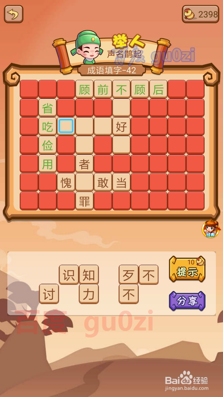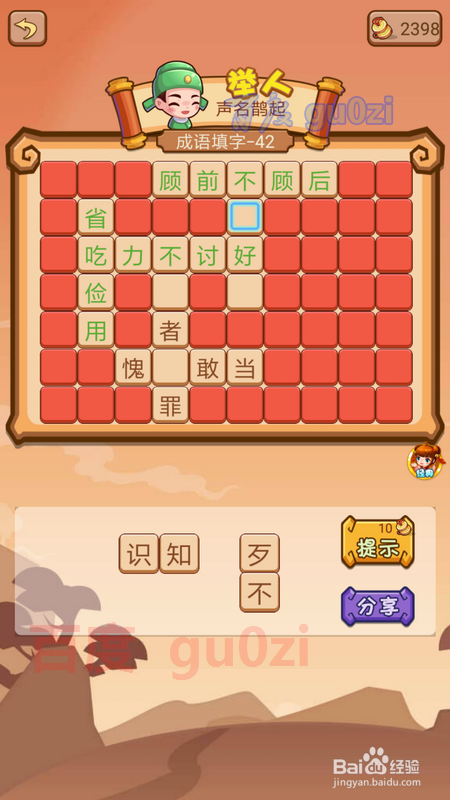 当作语填字游戏是疯狂猜当作语2中的一种弄法,也是会碰到生僻的当作语的,这时可以先从知道的入手,到后面就很轻易获得谜底了,继续分享疯狂猜当作语2 会试41-44关攻略。