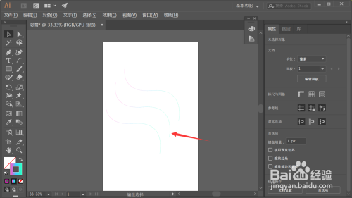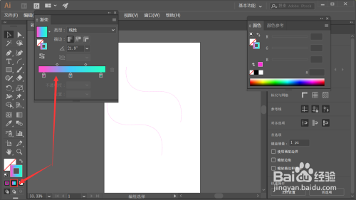 然后我们将曲线的描边颜色改为渐变填充,双击渐变填充的按钮,设置好渐变颜色即可,如下图所示。