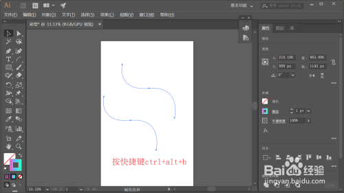 然后我们将两条曲线全数选中,按ctrl+alt+b键将两条曲线夹杂,夹杂后我们可以看到只两条曲线之间只呈现了一条曲线,所以我们要点窜一下夹杂东西的设置。