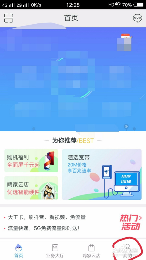 首先我们打开天翼糊口的app,然后找到右下角的‘我的’