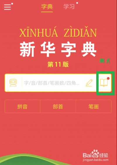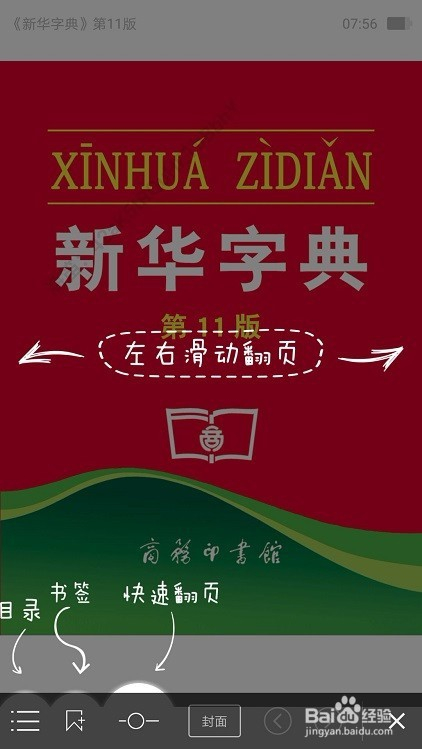 点开字典的首个界面,在白框中右侧有个书形的小黄标,点此可以实现屏端直接翻页。