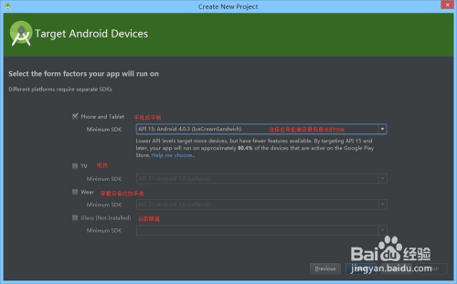 选择开辟法式将运行在哪个平台上,如下图所示: