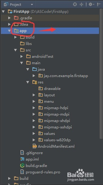 接着看下我们的项目布局,而我们一般关心的只是app这个目次,如下图所示:
