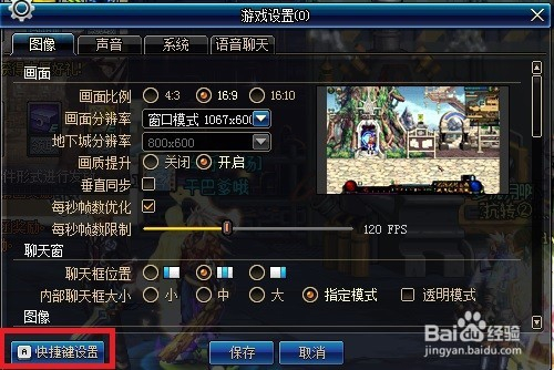 在游戏设置界面,我们点击“快捷键设置”,如图红色标识