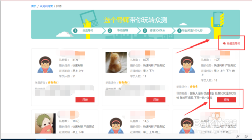 领会到方才的那些信息后,我们就要从第四步拜师起头操作,因为这长短常主要的一步。我们返回 百度众测 的首页 找到右边的 导师系统 点击进入,如图所示~