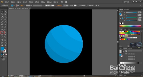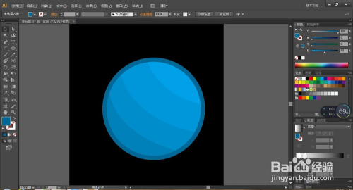 再次选择椭圆东西绘制一正圆,填充颜色比圆中最深的色值再加深。将其居中。