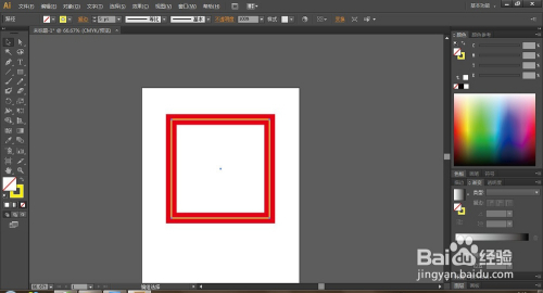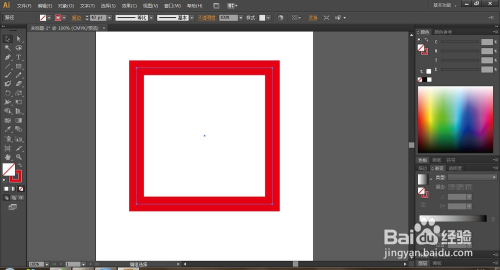 选择矩形东西绘制一正方形,去除填充,设置描边颜色为红色,大小为:40pt。